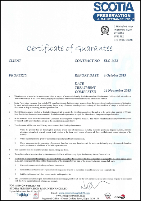 Our preservation work is fully guaranteed. Woodworm, dry rot and wet rot are all covered by a 20 year guarantee. Basement waterproofing works are covered by a 10 year guarantee.